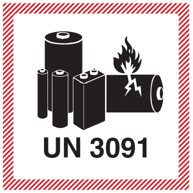 Kennzeichnung "Lithium-Metall-Zellen oder -Batterien in Ausrüstungen" UN 3091 - Gefahrzettel für den Transport gefährlicher Güter nach ADR